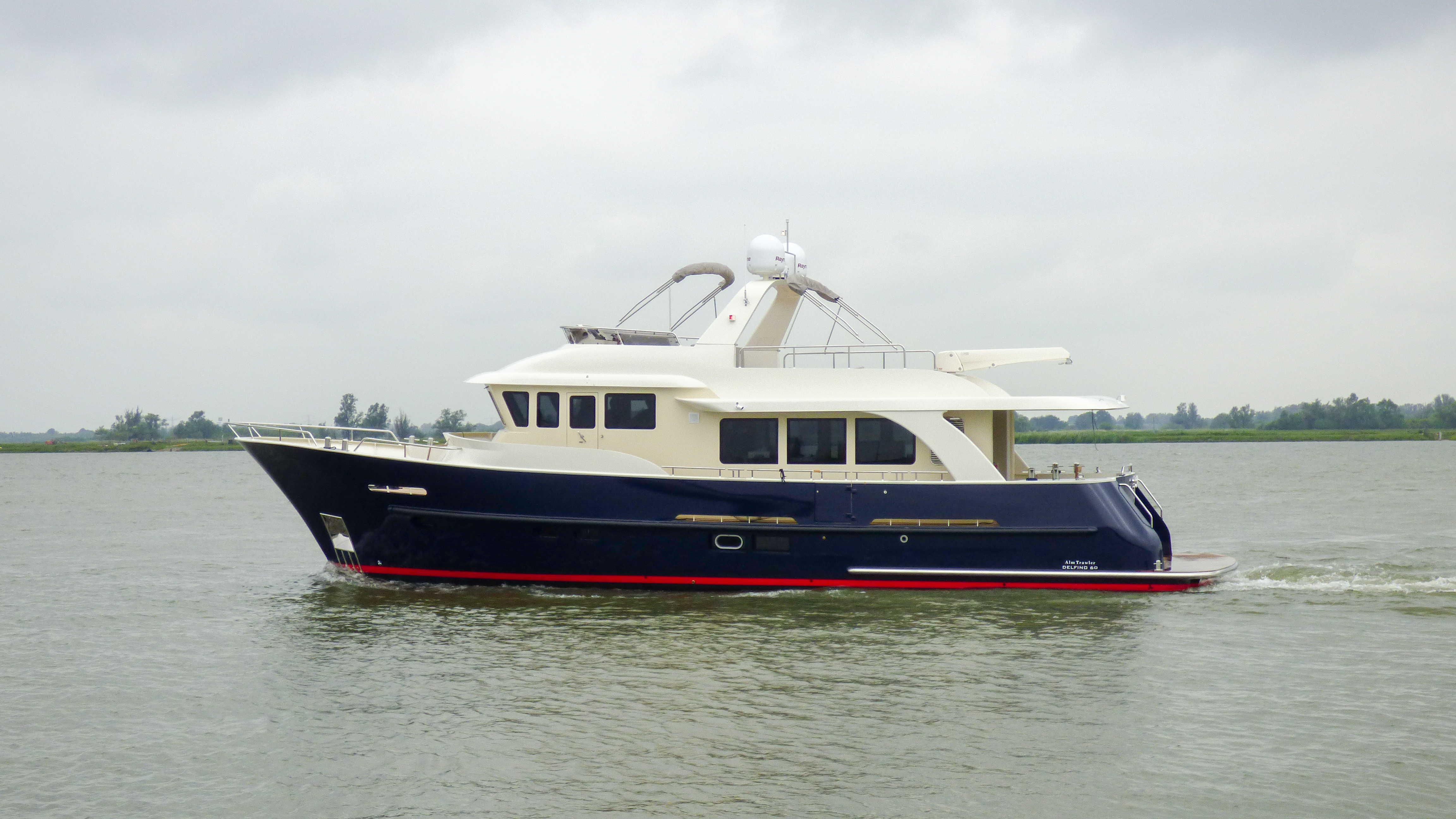 De Delfino 60 Trawler is gebaseerd op de succesvolle lijn van Delfino 65 en 70ft. Het belangrijkste verschil met het eerste zicht zijn de voorste ramen van het stuurhuis die "negatief" zijn geplaatst om meer ruimte te creëren en een beter zicht te hebben, zeker in gevallen met slechte weersomstandigheden. Verder zijn de leuke Portugese brug en mooie radarboog echte blikvangers!