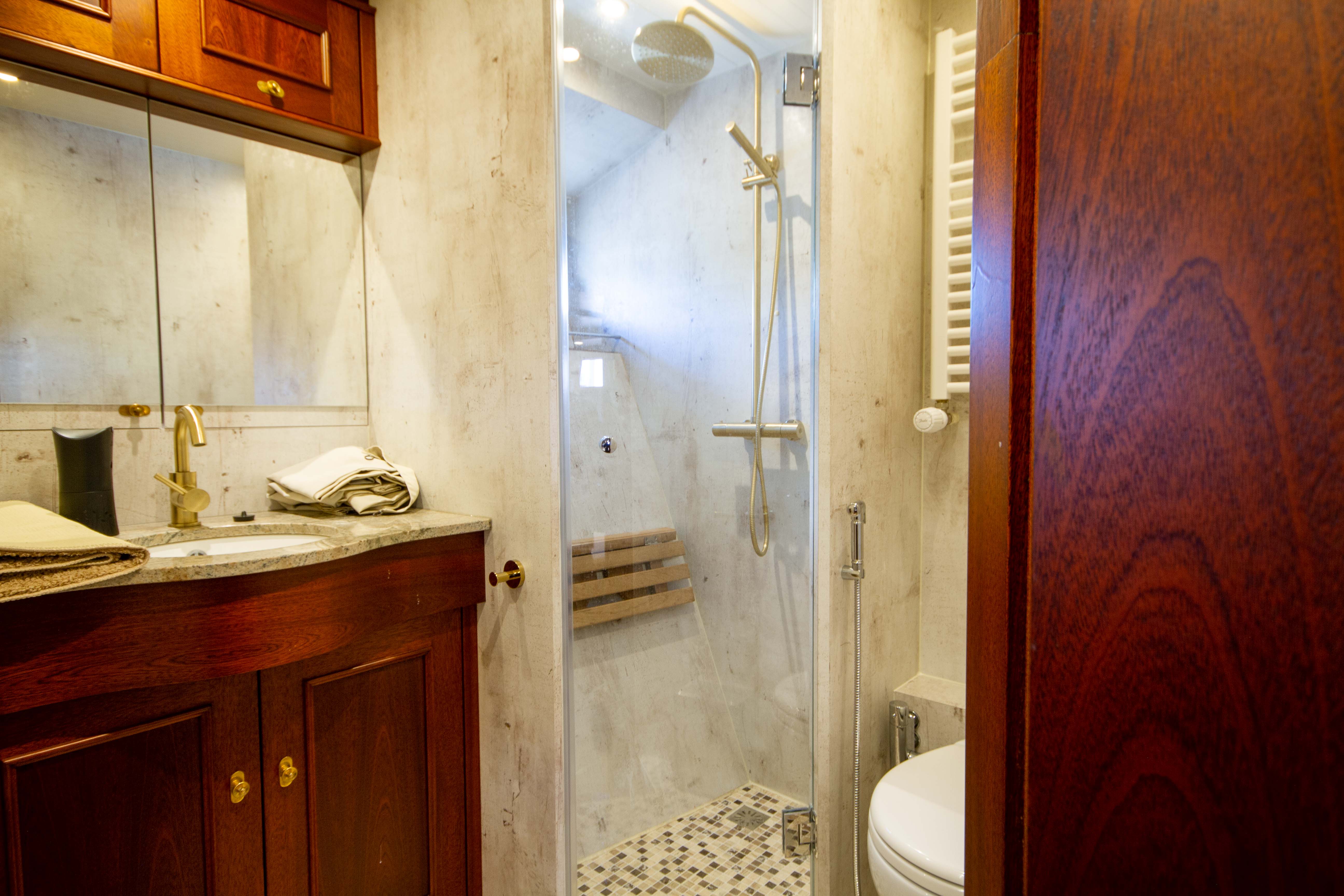 De lay-out kan worden aangepast zoals bij al onze andere modellen waarbij 3 hutten tot de standaard lay-out behoren met de mogelijkheid van een bemanningshut achterin. 1 of 2 motoren zijn mogelijk. De stuurhut, kombuis en salon bieden voldoende ruimte voor de eigenaar en zijn gasten om comfortabel te genieten van vele cruises. Alle materialen zoals hout, kleuren, aanrecht, plafond, stoffering en dergelijke kunnen worden gekozen voor een materiaal naar keuze. Ook op het achterdek, het voordek en de fly-bridge zijn er leuke gebieden om te genieten tijdens het zonnebaden of gewoon om te ontspannen. Het zwemplatform is gemakkelijk bereikbaar met 2 mooie trappen om in een rib te stappen of gewoon om te zwemmen. Beide modellen zijn ontworpen door Werner Yacht design in samenwerking met AZZA Yachting en Jachtbouw de Alm bv.