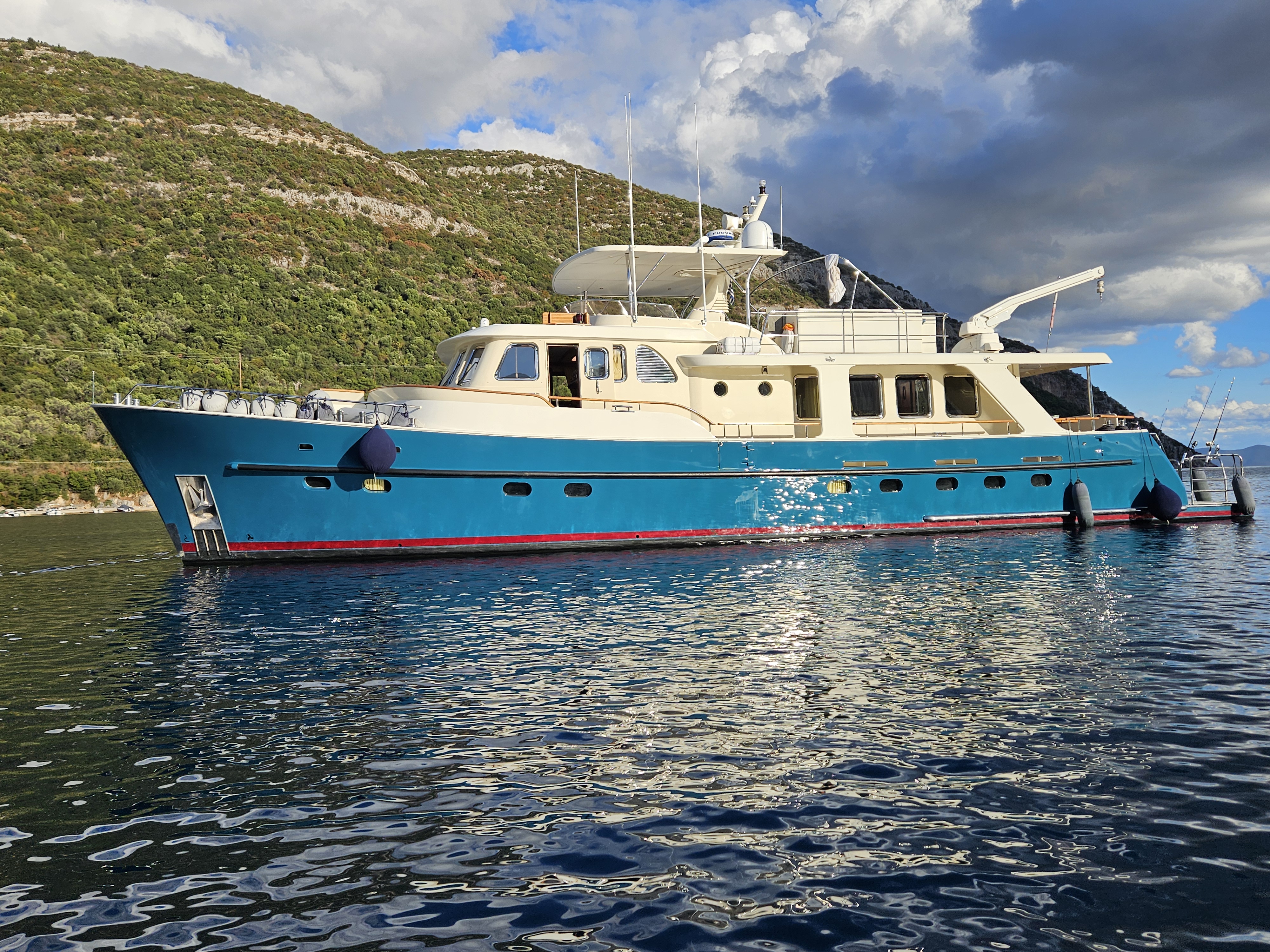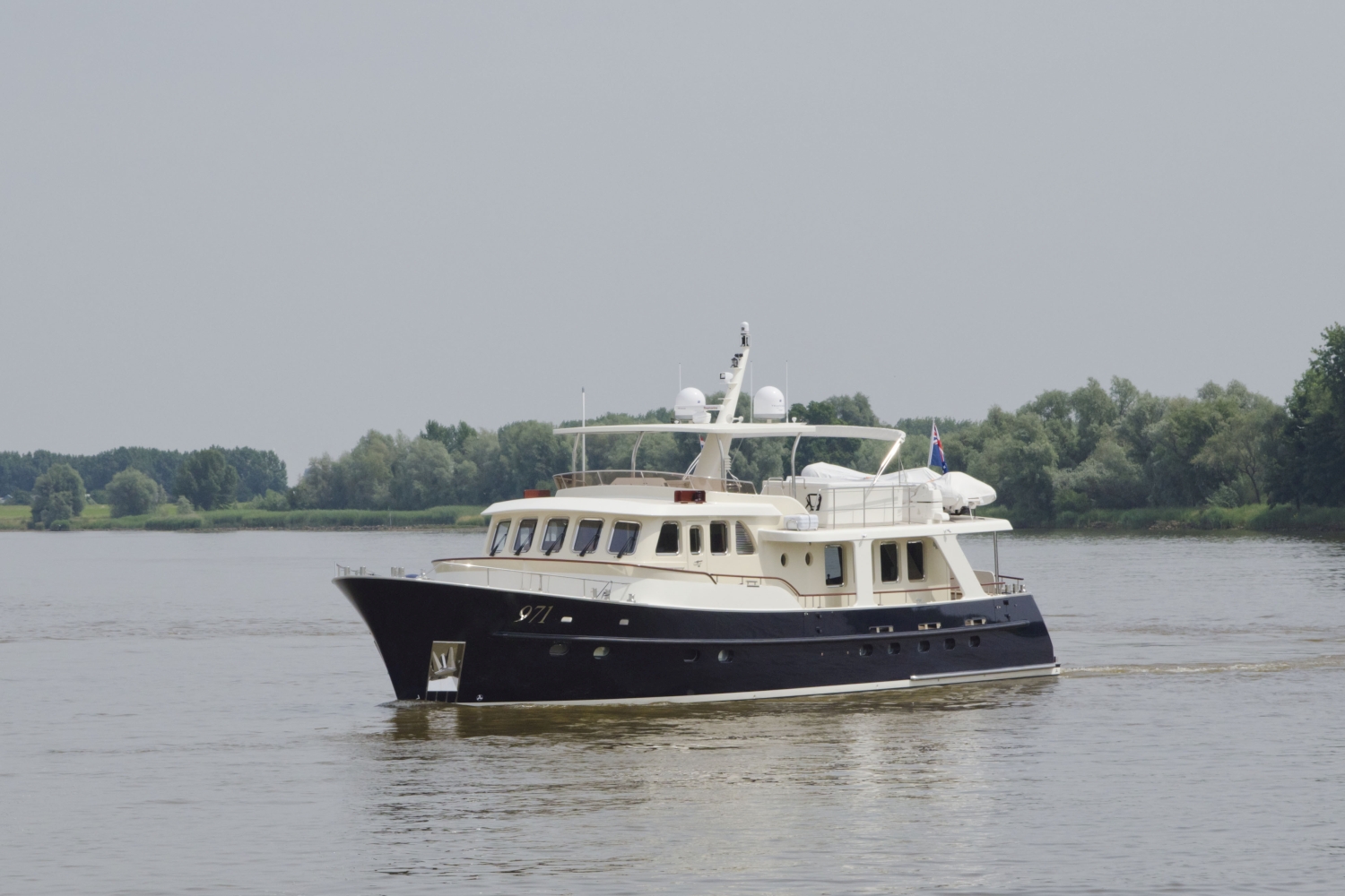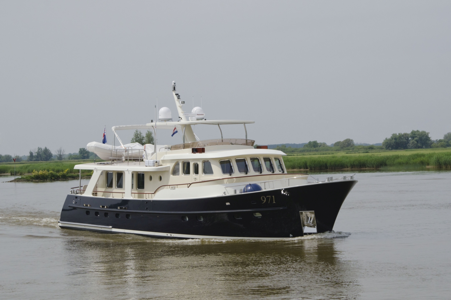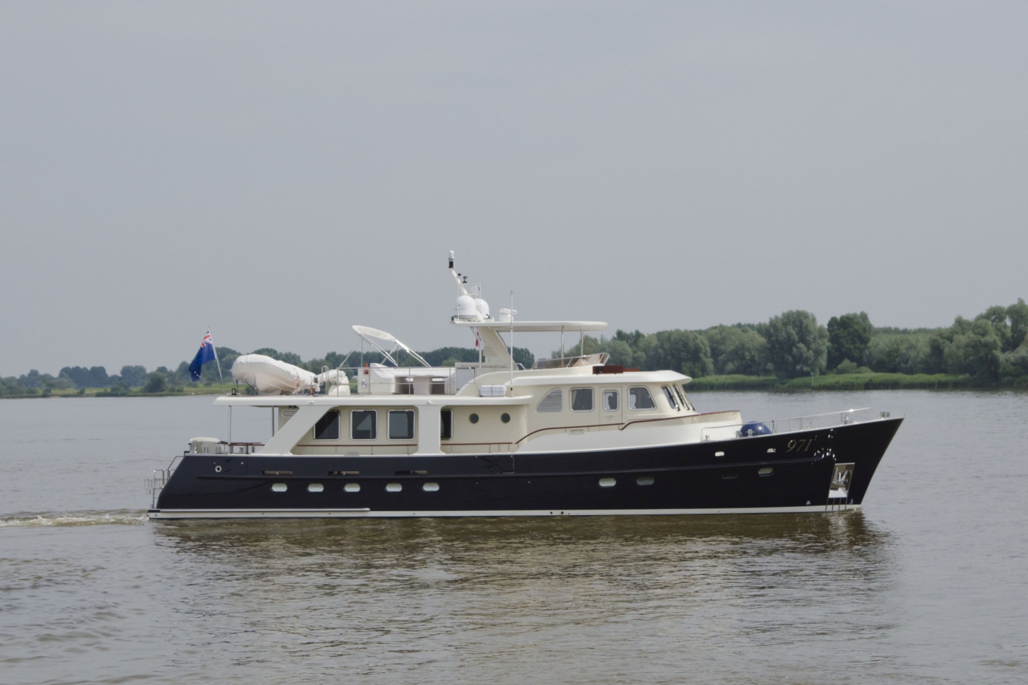 The DELFINO 70 Alm trawler with euro transom is the flagship of Alm Yacht Builders. Many are fascinated by the harmony exuded by the exterior and interior finish.