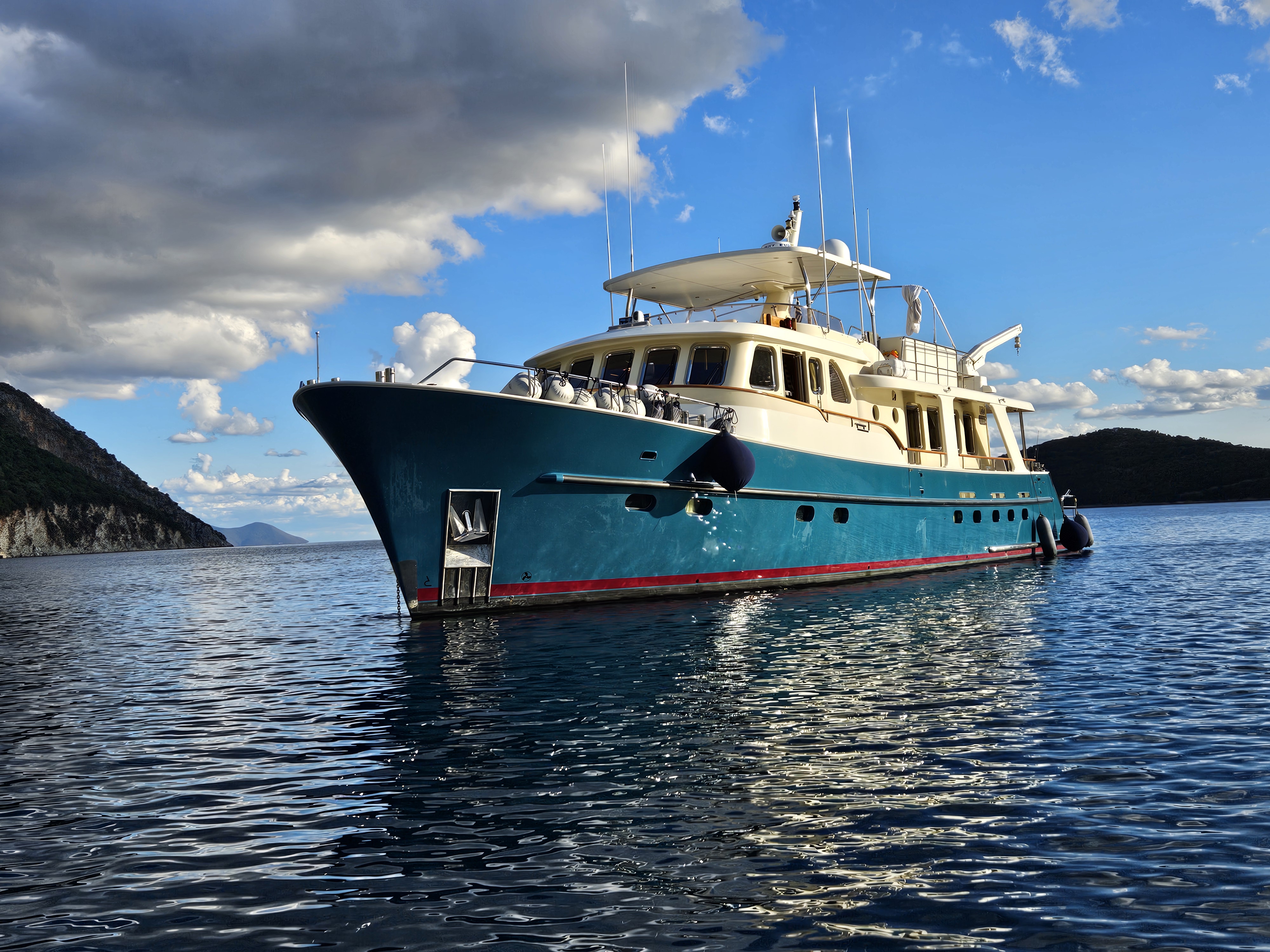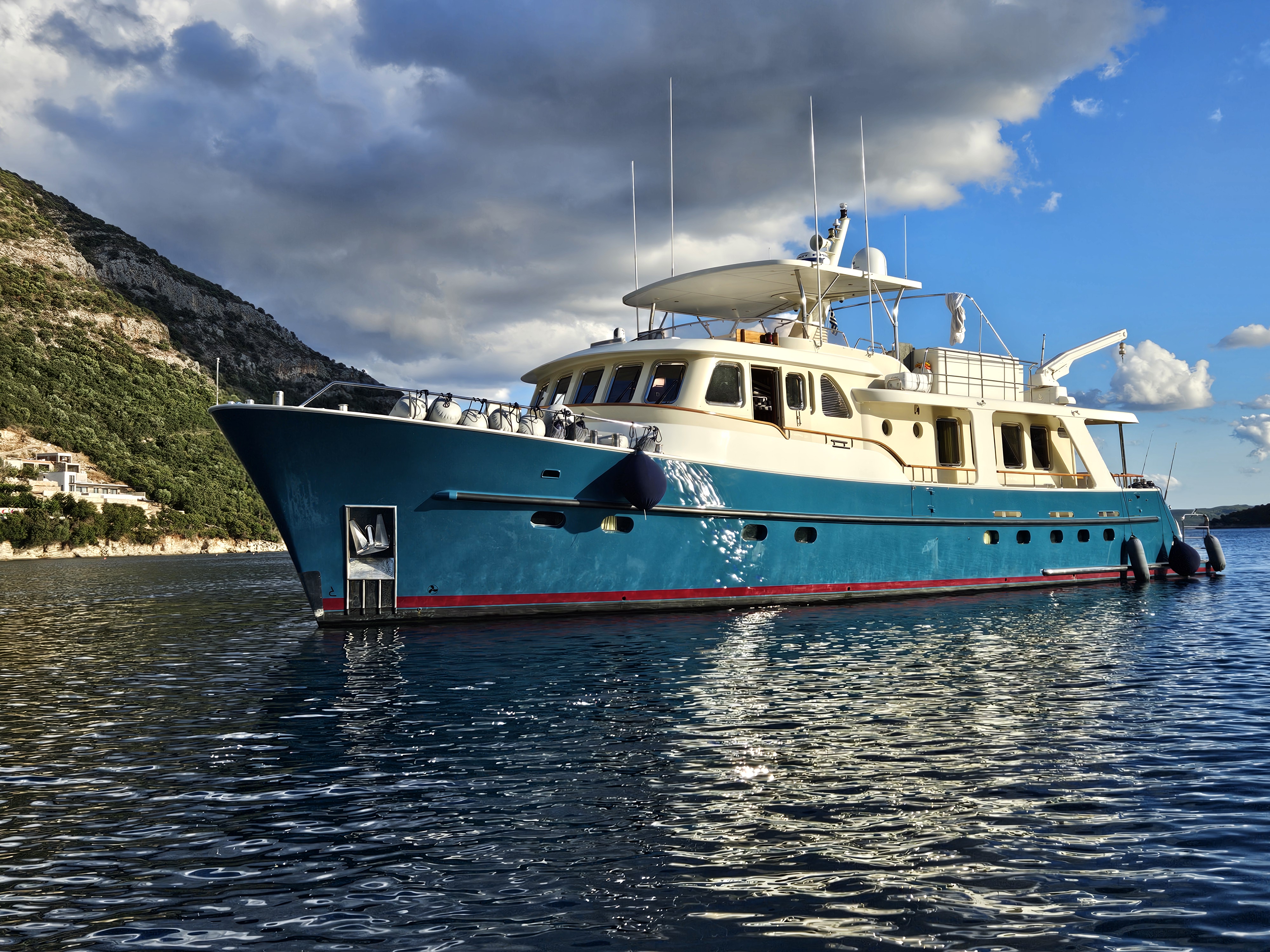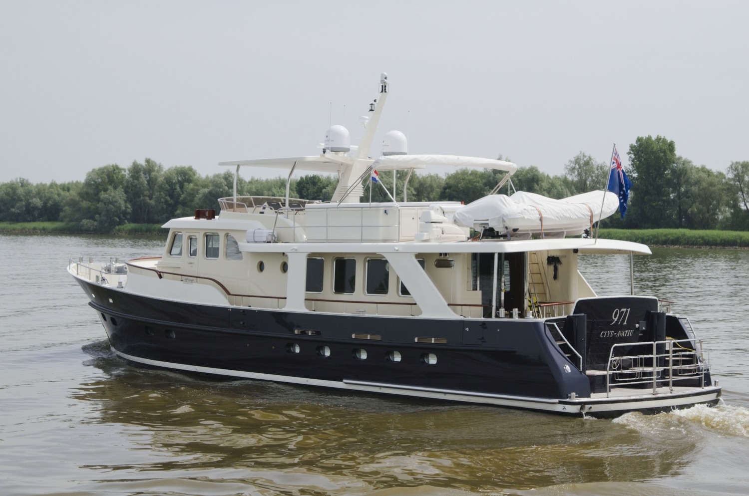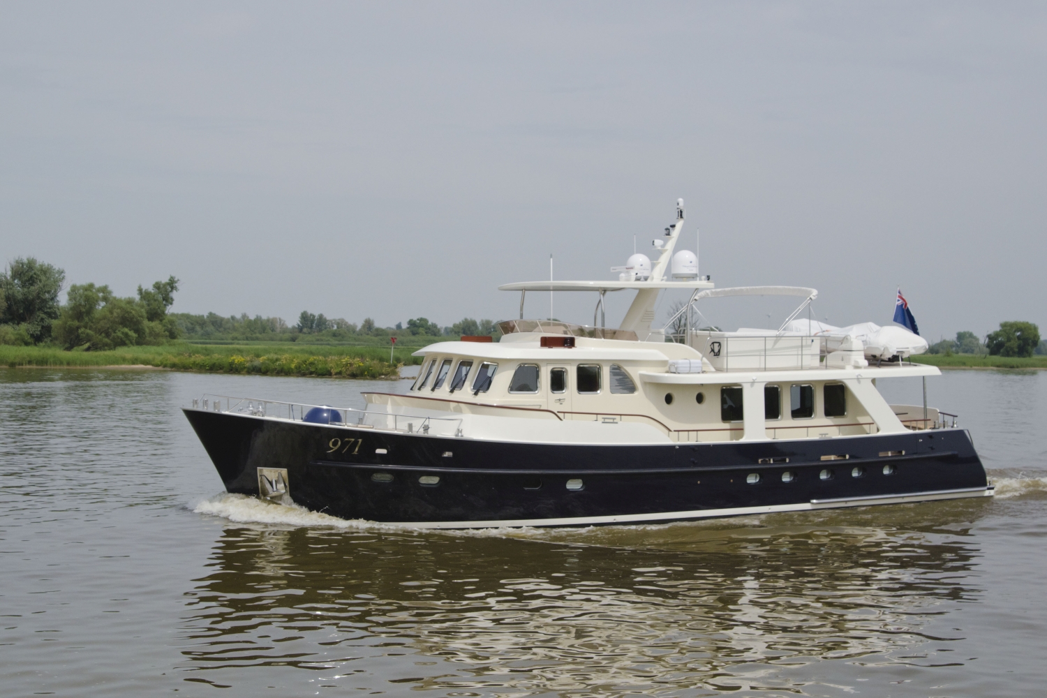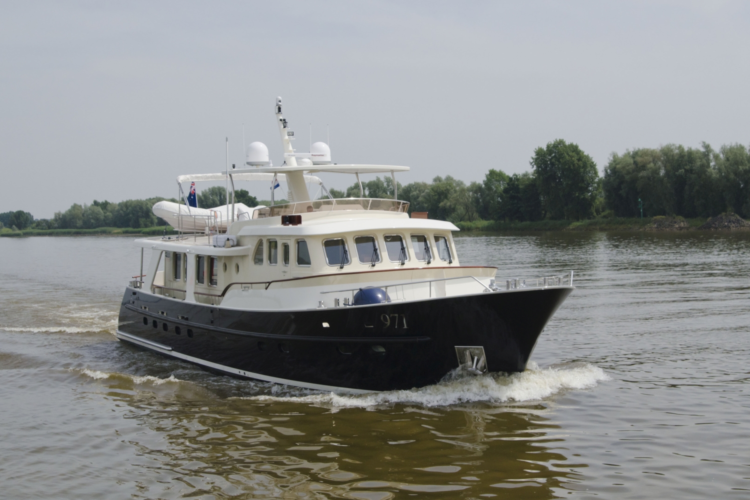 The DELFINO 70 Alm trawler with euro transom is the flagship of Alm Yacht Builders. Many are fascinated by the harmony exuded by the exterior and interior finish.